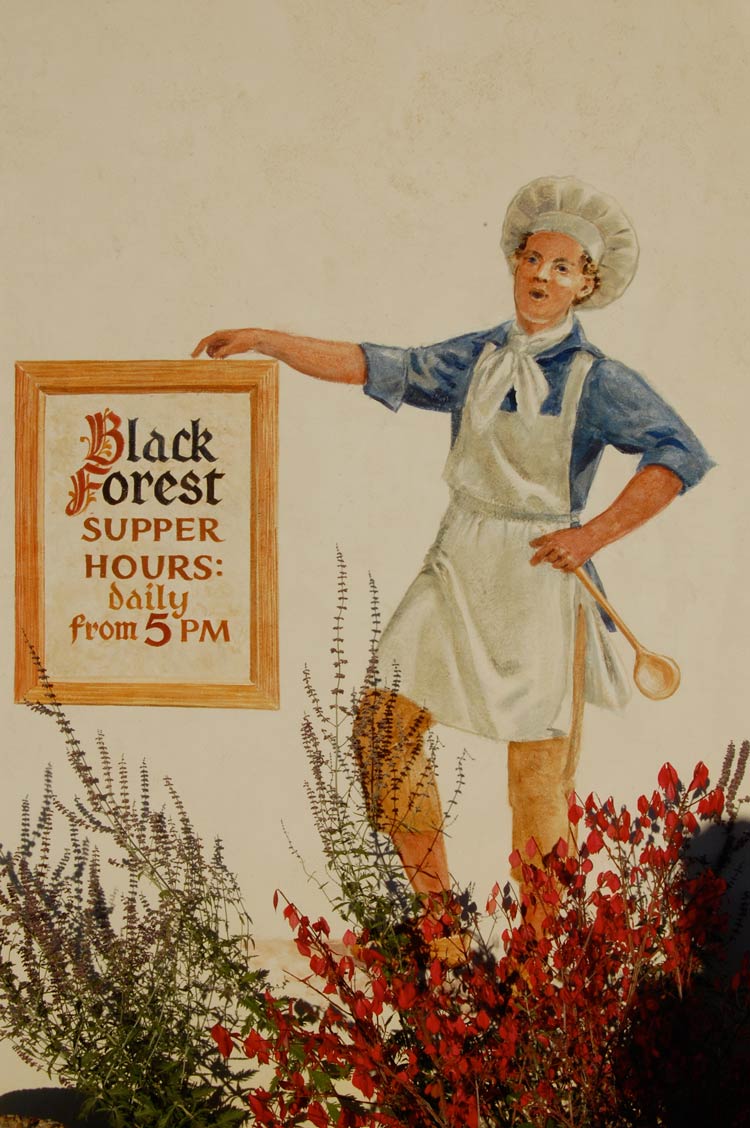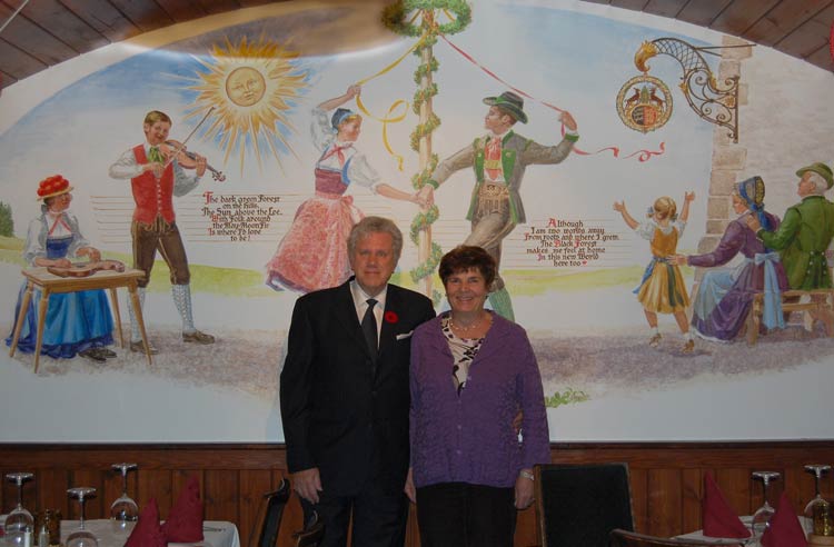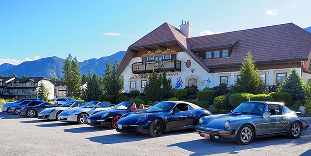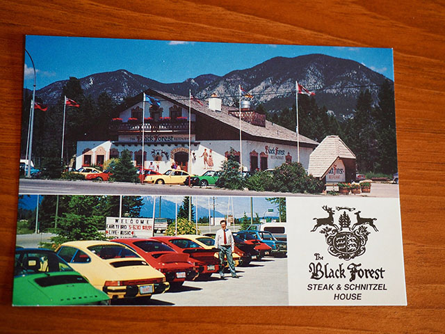 A family owned restaurant for over 30 years, the restaurant had an authentic European atmosphere and an extensive Bavarian menu. The attentive staff were dressed in traditional Austrian costumes, and the restaurant walls were filled with beautiful Bavarian murals. It was another great way for our club to celebrate its 20th anniversary, with delicious food, great service and a festive atmosphere! Coincidentally the proprietor of the Black Forest restaurant Nicolaas Veen happens to be a Porsche enthusiast as well, as he features Porsches in the restaurants’ promotional postcard. Taken at a luncheon hosted by Veen sometime between 1988-1989, the photos feature a colorful collection of Porsches parked in front of the Black Forest restaurant’s former location. On June 15th as a tribute to our mutual love of Porsches and a salute to “Porsches from the Past” we parked our Porsches in front of the Black Forest restaurant and proceeded to take a group photo.